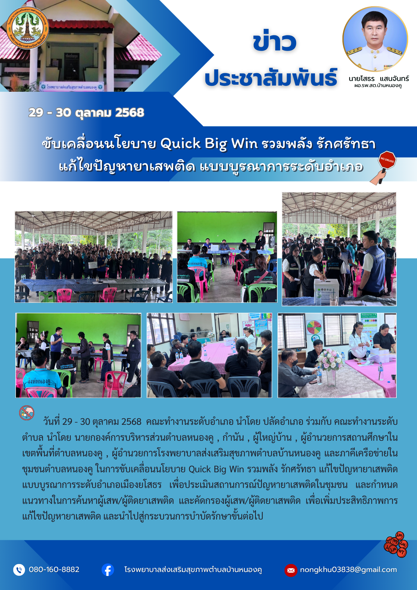 Quick Big Win แก้ไขปัญหายาเสพติด แบบบูรณาการระดับอำเภอ(รพ.สต.หนองคู)