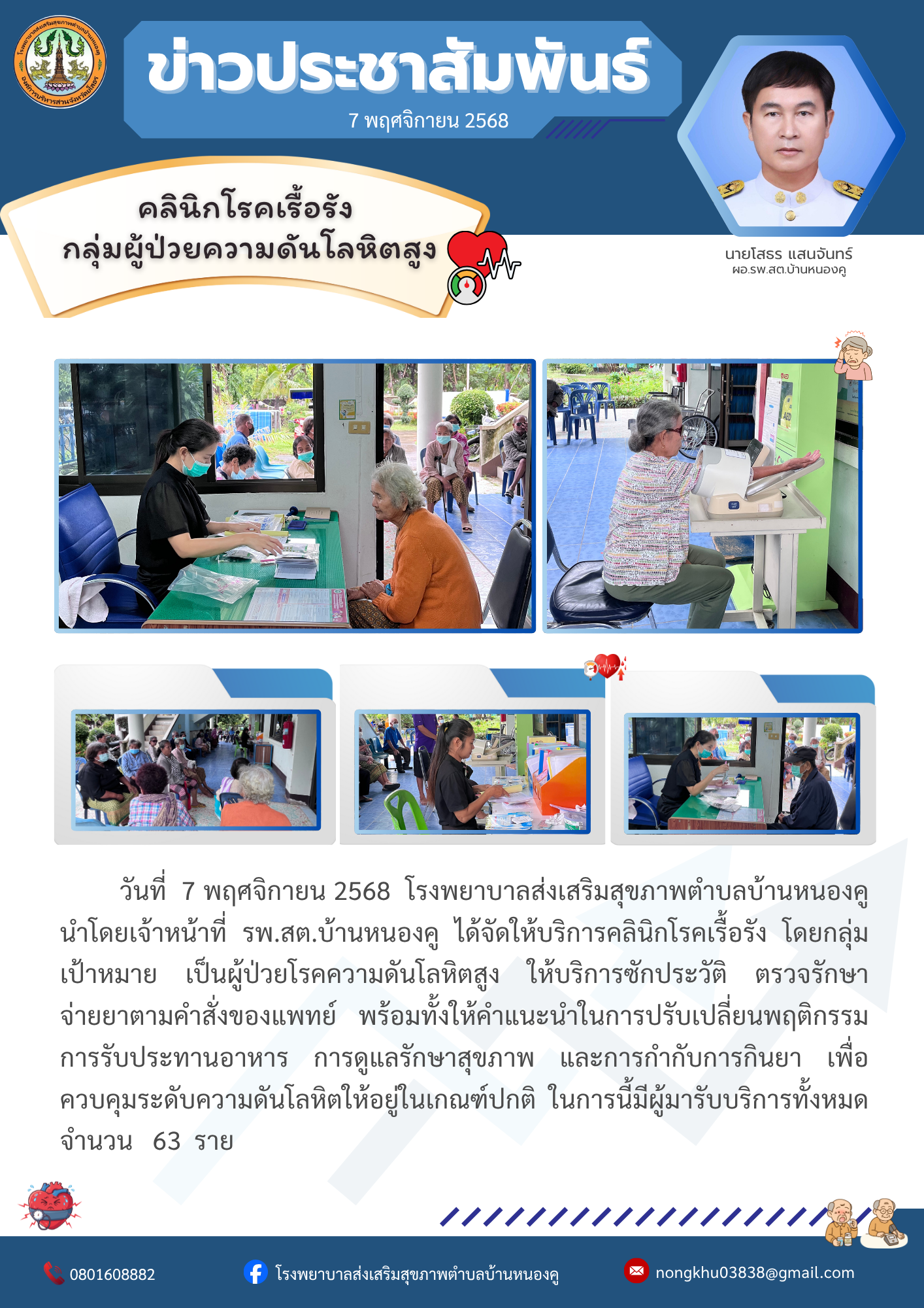 คลินิกโรคเรื้อรัง กลุ่มผู้ป่วยโรคความดันโลหิตสูง(รพ.สต.หนองคู)