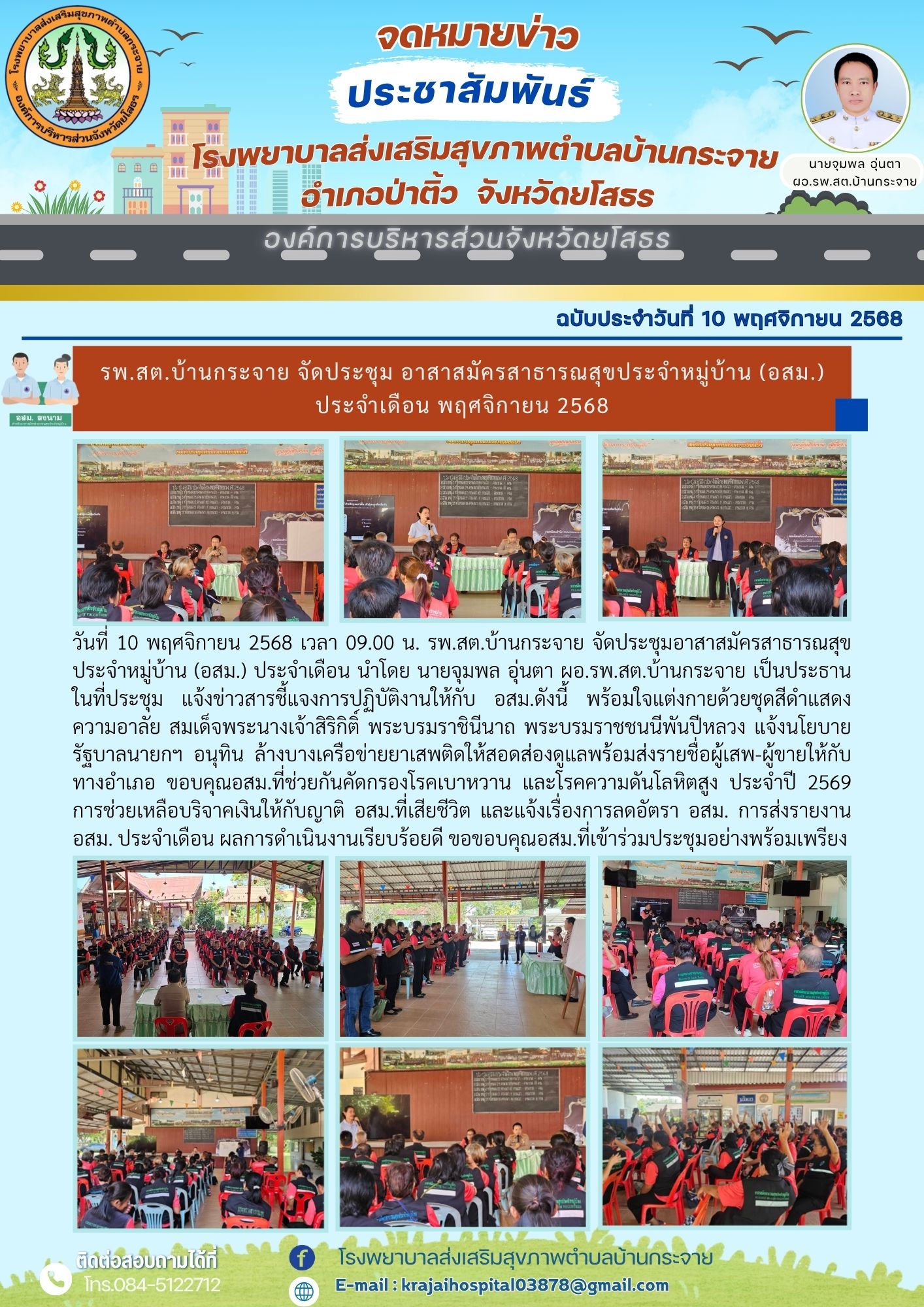 รพ.สต.บ้านกระจาย จัดประชุมอาสาสมัครสาธารณสุขประจำหมู่บ้าน (อสม.) ประจำเดือน พฤศจิกายน(รพ.สต.กระจาย)