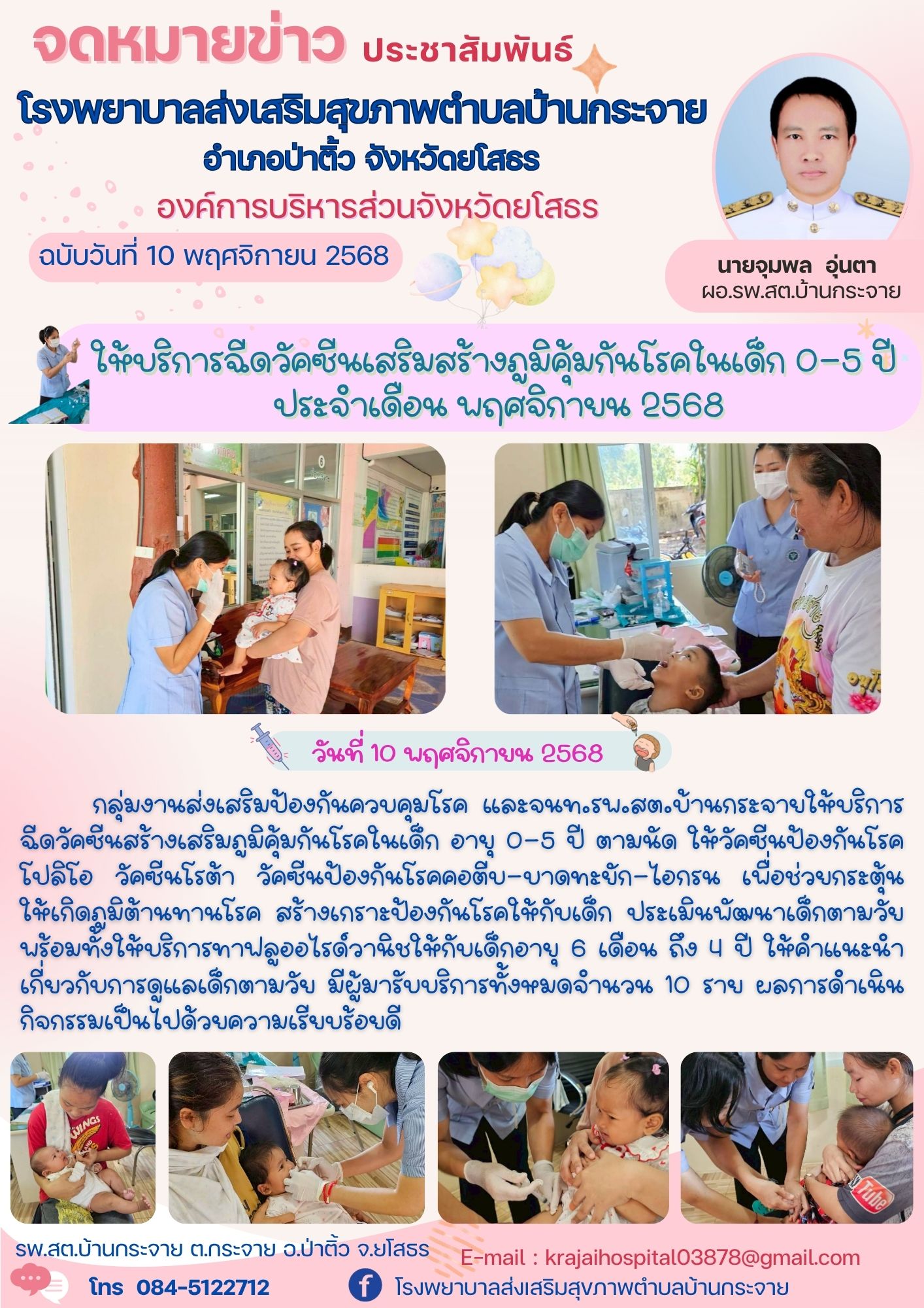 รพ.สต.บ้านกระจายให้บริการฉีดวัคซีนสร้างเสริมภูมิคุ้มกันโรคในเด็ก อายุ 0-5 ปี ประจำเดือน พฤศจิกายน(รพ.สต.กระจาย)